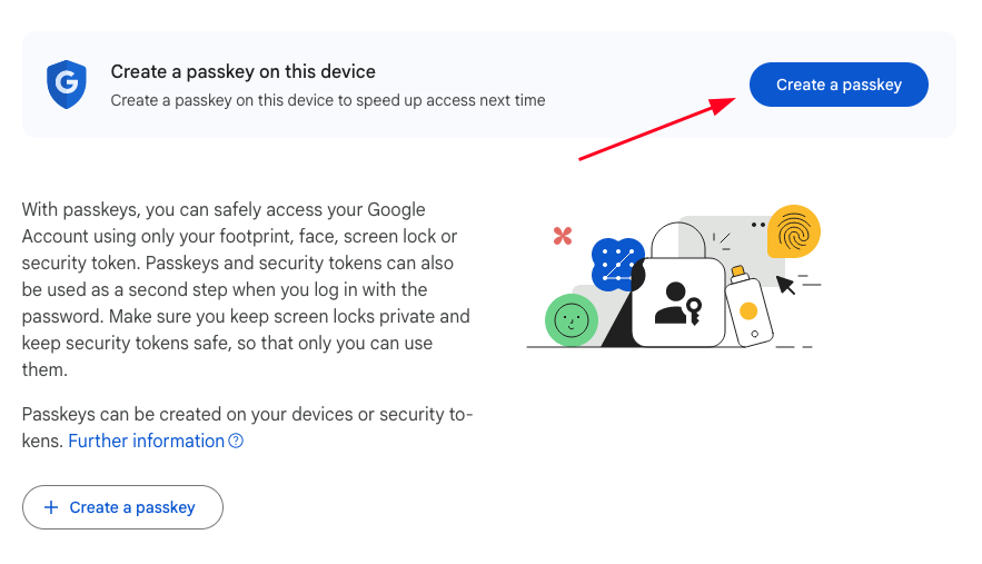 Good job! You have successfully created your Google passkey. From now on, you can access your Google Account faster and easier, without having to remember those weird password characters. 😄